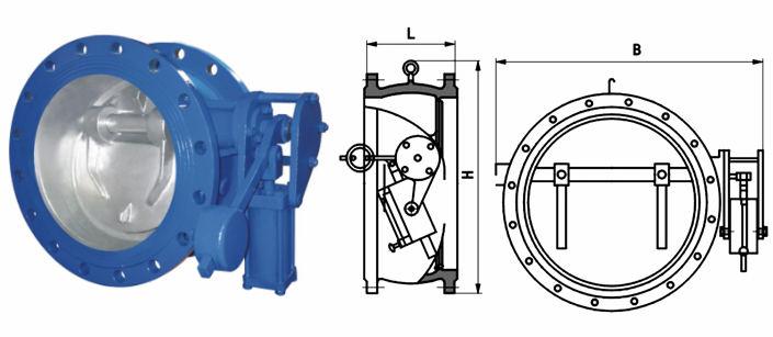 蝶式緩沖止回閥外形結(jié)構(gòu)圖: