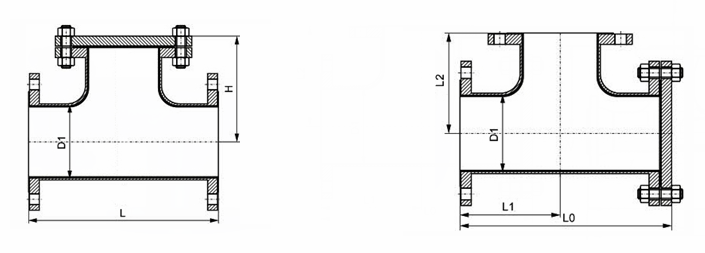 襯氟T型過濾器外形結(jié)構(gòu)圖: