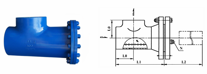 三通正折流T型過濾器外形結(jié)構(gòu)圖: