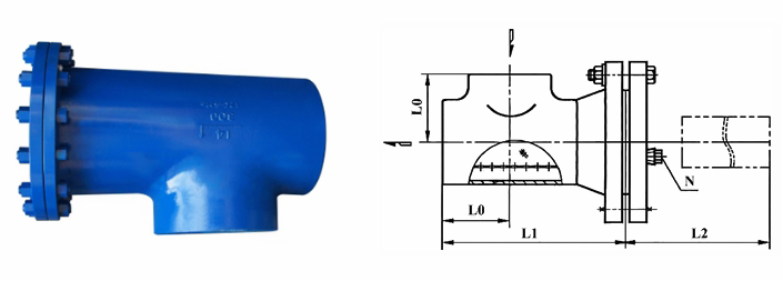 三通反折流T型過濾器外形結(jié)構(gòu)圖: