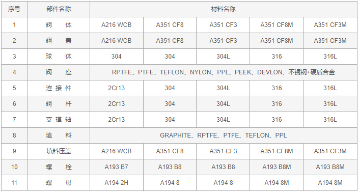 雙聯(lián)三通球閥零件材料: