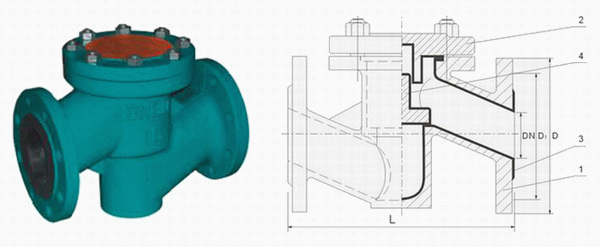 升降式襯膠止回閥外形結(jié)構(gòu)圖: