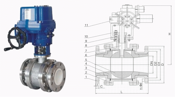電動陶瓷球閥外形結(jié)構(gòu)圖: