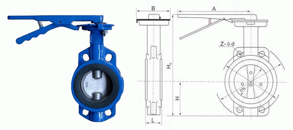 D71J手動(dòng)襯膠蝶閥外形結(jié)構(gòu)圖: