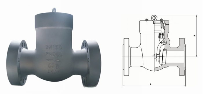 高壓止回閥是一種由閥體、閥座、閥瓣、搖桿、密封環(huán)及閥蓋等零件組成的閥瓣通過搖桿繞體腔內(nèi)閥軸作旋轉(zhuǎn)運(yùn)動的高溫高壓自密封式止回閥,其一般應(yīng)用于火力發(fā)電廠高溫高壓介質(zhì)及流速和壓力較平穩(wěn)的大口徑管道系統(tǒng)中。該閥依靠介質(zhì)的流動開關(guān)閥瓣,使介質(zhì)單方向流動,防止介質(zhì)倒流,閥瓣在介質(zhì)流動推力的作用下旋轉(zhuǎn)開啟,在沒有介質(zhì)流動的情況下,閥瓣通常緊靠閥座形成密封,本產(chǎn)品啟閉速度快,壓力高,口徑大,介質(zhì)流通順利,流體阻力小。