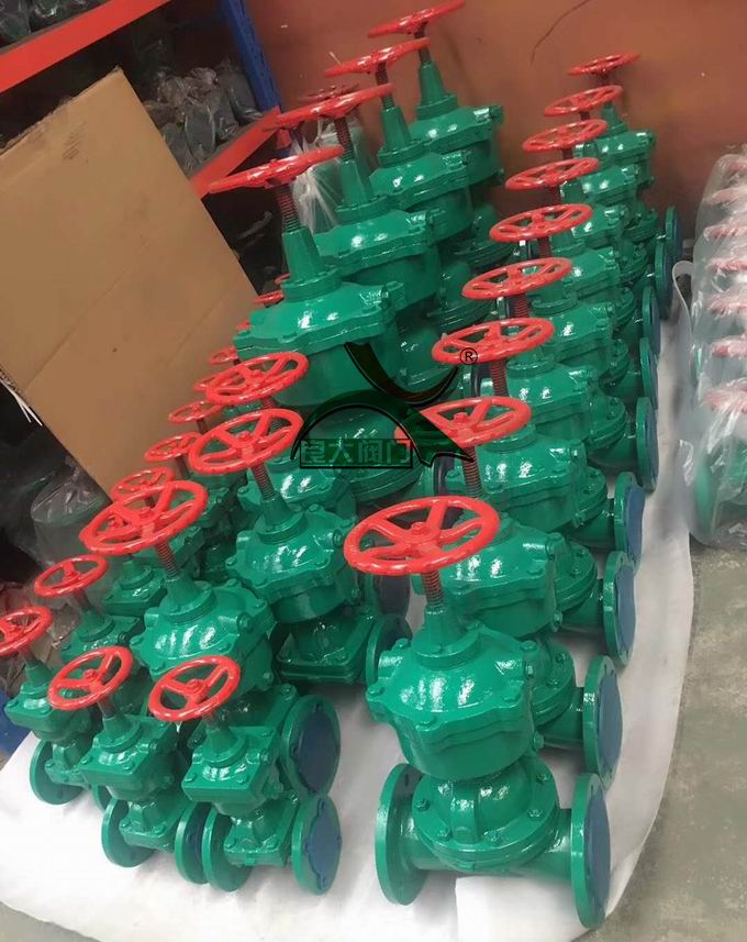 8、隔膜閥的閥體內(nèi)腔表面復(fù)有可供選擇的多種橡膠、氟塑料等。因此具有耐腐蝕的特點(diǎn)。