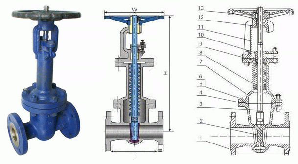 波紋管閘閥外形結(jié)構(gòu)圖: