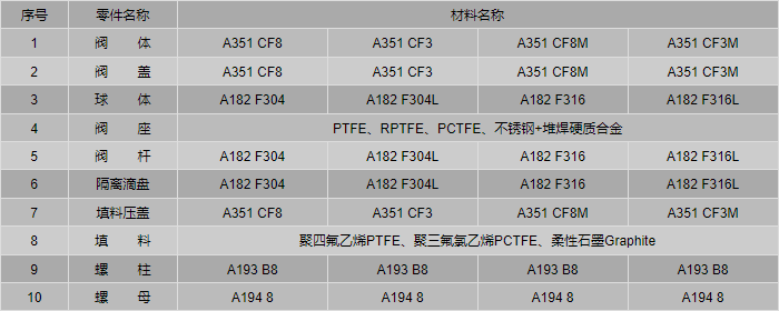 氣動(dòng)低溫螺紋球閥零件材料: