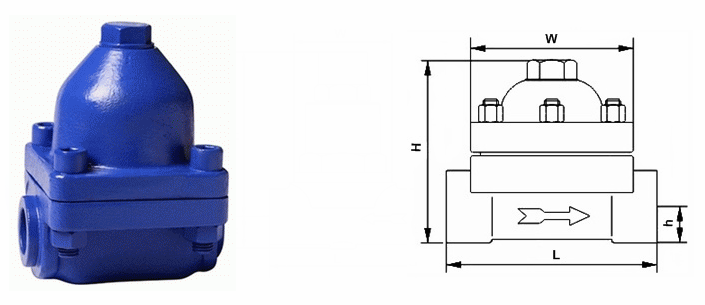 可調(diào)雙金屬片式蒸汽疏水閥外形結(jié)構(gòu)圖:
