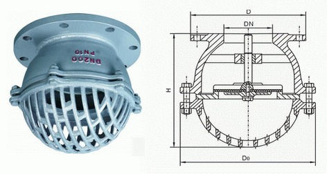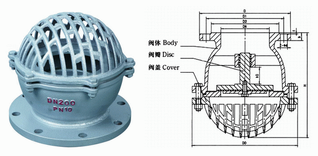 水下式底閥是一種節(jié)約能源的閥,一般安裝在水泵水下吸管的底端限制水泵管內(nèi)液體返回水源,起著只進(jìn)不出的功能。閥蓋上有很多個(gè)進(jìn)水口和加強(qiáng)筋起到了不易堵塞,主要應(yīng)用在抽水的管路上水道和支承的作用,安裝在水泵底部防止水的倒流,連接方式有法蘭連接和螺紋連接。