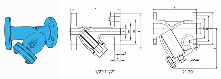 美標(biāo)法蘭Y型過(guò)濾器外形結(jié)構(gòu)圖:
