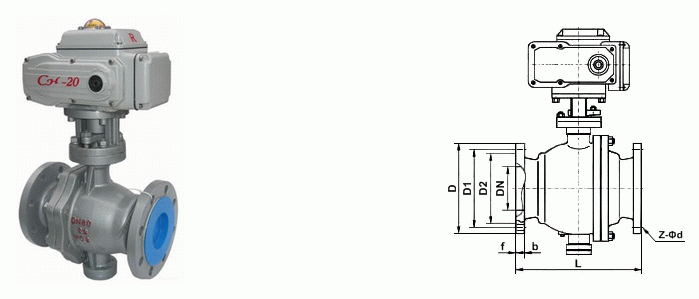 電動(dòng)調(diào)節(jié)球閥外形結(jié)構(gòu)圖: