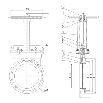 陶瓷刀閘閥外形結(jié)構(gòu)圖: