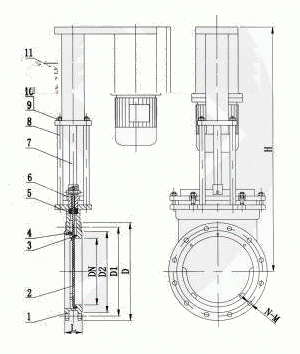 電液動(dòng)陶瓷刀閘閥外形結(jié)構(gòu)圖: