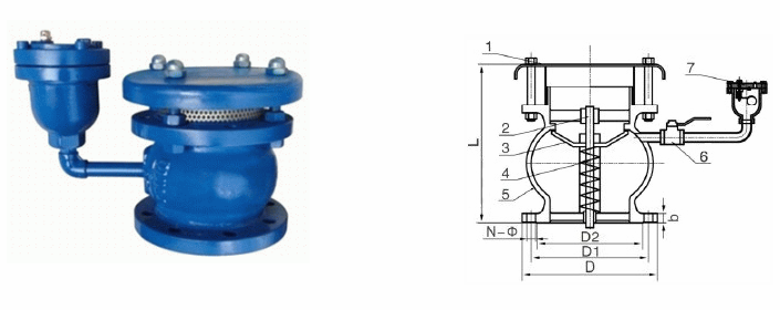 注氣微排閥在突然停泵或關(guān)閉閥門或人為排水時,管內(nèi)某些位置處的水柱可能產(chǎn)生分離,管內(nèi)出現(xiàn)真空(負(fù)壓),在負(fù)壓值達(dá)到-1kPa~3kPa時,外界壓強大于內(nèi)部壓強,吸氣閥內(nèi)部彈簧被外界空氣壓強和閥瓣自重擠壓,彈簧上的閥瓣下移,吸氣口打開,空氣通過負(fù)壓吸氣閥的高速吸氣孔口從四周快速進入,使管內(nèi)負(fù)壓降到很低,以保證管件和密封接口的安全性。
