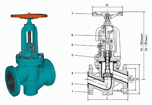 法蘭襯膠截止閥外形結(jié)構(gòu)圖:
