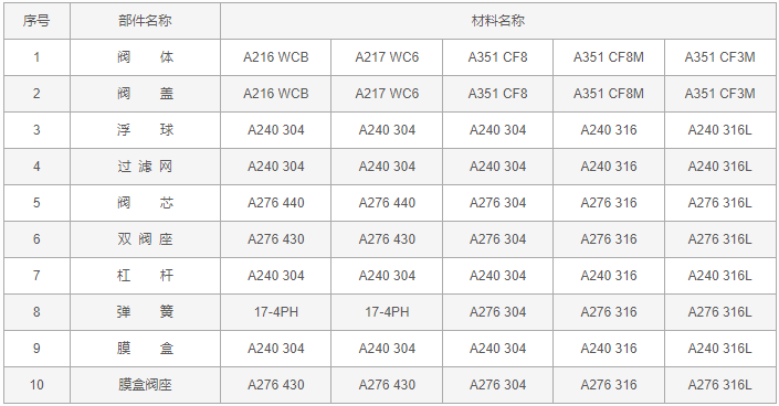 FT43H杠桿浮球式疏水閥零件材料: