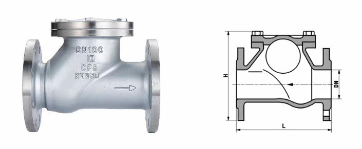 不銹鋼滑道滾球式止回閥外形結構圖: