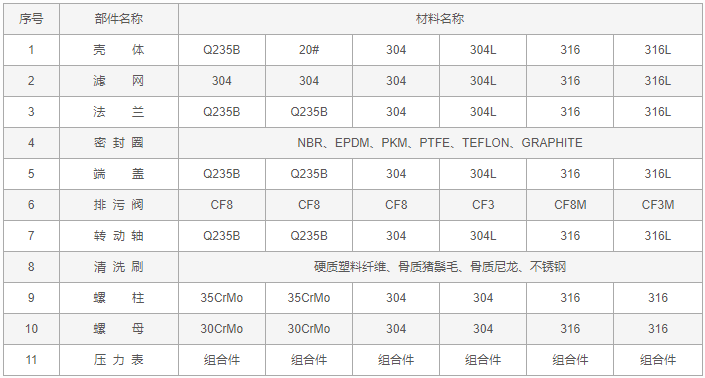 尊敬的客戶!我公司手搖刷式過濾器公稱通徑、工作壓力、法蘭標(biāo)準(zhǔn)、過濾精度及濾網(wǎng)材質(zhì)等可根據(jù)客戶需求定制,本產(chǎn)品清洗刷材料可選用不銹鋼、豬鬃毛、骨質(zhì)尼龍等,過濾芯件可采用沖孔板濾筒內(nèi)置編制絲網(wǎng)或不銹鋼楔形濾網(wǎng),具體詳情請(qǐng)咨詢我司銷售技術(shù)人員。
