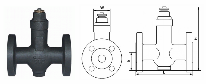 可調(diào)恒溫式疏水閥外形結(jié)構(gòu)圖: