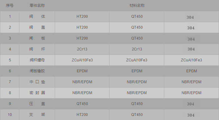 消防明桿閘閥零件材料:
