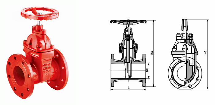 軟密封暗桿消防閘閥外形結(jié)構(gòu)圖: