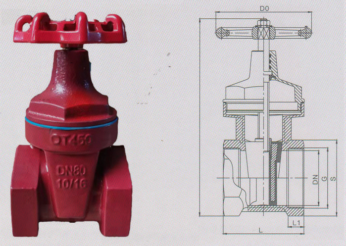 消防絲扣閘閥外形結(jié)構(gòu)圖: