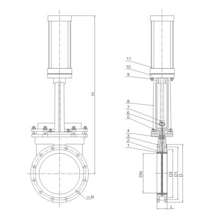 氣動(dòng)陶瓷漿液閥外形結(jié)構(gòu)圖: