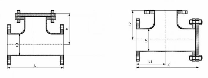 T型襯四氟過(guò)濾器外形結(jié)構(gòu)圖:
