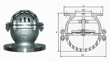 底閥通常安裝于水面以下,而水上式底閥則安裝于水面以上,它是老式底閥的更新?lián)Q代產(chǎn)品,是理想的引水設(shè)備而且亦可取代真空泵及抽真空裝置。該底閥設(shè)計合理,制造工藝先進,安裝、使用、檢修方便。并具有摩擦阻力小,使用壽命長,節(jié)能等優(yōu)點,廣泛適用于石化、化工、紡織、印染、冶金、礦山、排灌等行業(yè)的水泵配套設(shè)施。