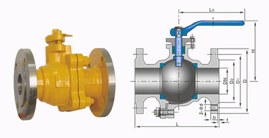 法蘭氨用球閥外形結(jié)構(gòu)圖: