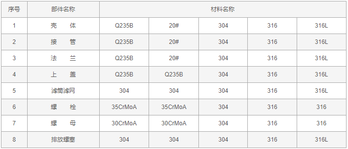 U型過(guò)濾器零件材料: