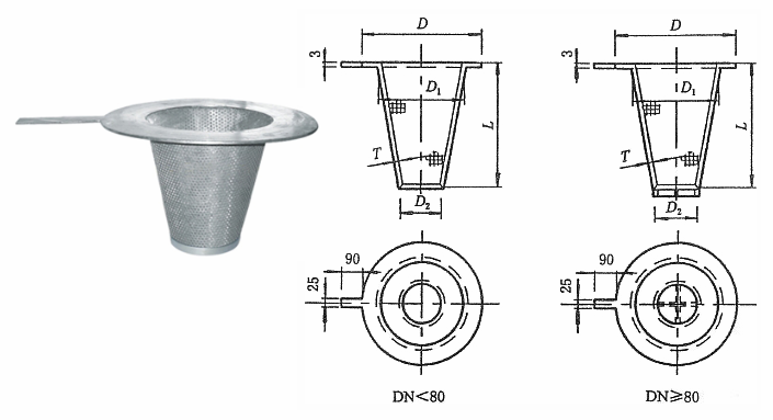 平頂錐形過(guò)濾器外形結(jié)構(gòu)圖: