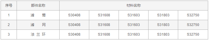 法蘭尖頂錐形過(guò)濾器零件材料: