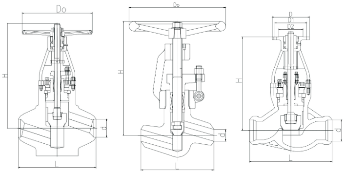 自密封鍛造截止閥外形結(jié)構(gòu)圖: