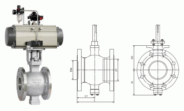 不銹鋼氣動(dòng)V型球閥外形結(jié)構(gòu)圖: