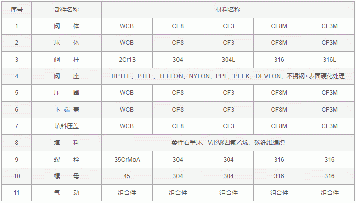 氣動(dòng)帶手動(dòng)V型球閥零件材料: