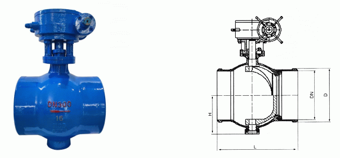 焊接偏心半球閥外形結(jié)構(gòu)圖: