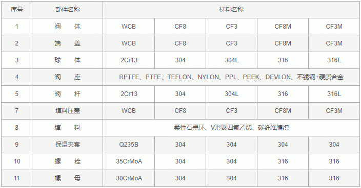 碳鋼保溫球閥零件材料: