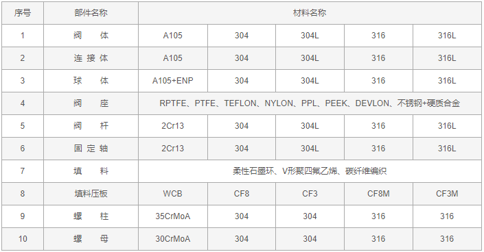 鍛鋼固定式球閥零件材料: