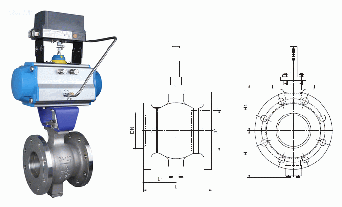 氣動V型球閥外形結(jié)構(gòu)圖: