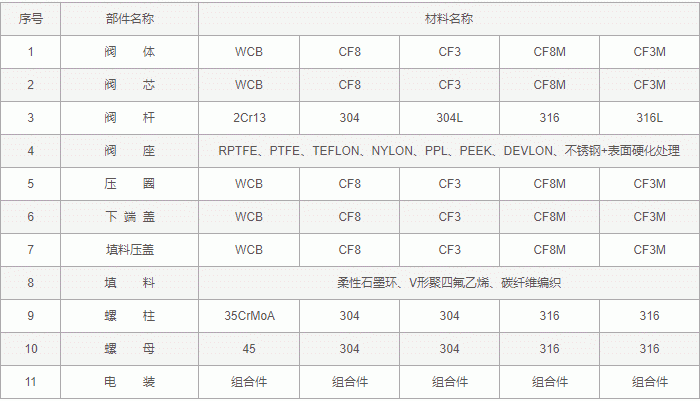 電動(dòng)V型調(diào)節(jié)球閥零件材料: