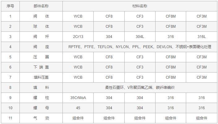 氣動對夾V型球閥零件材料: