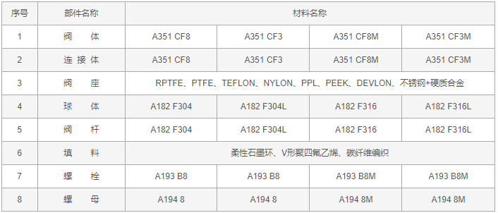 手動(dòng)美標(biāo)球閥零件材料: