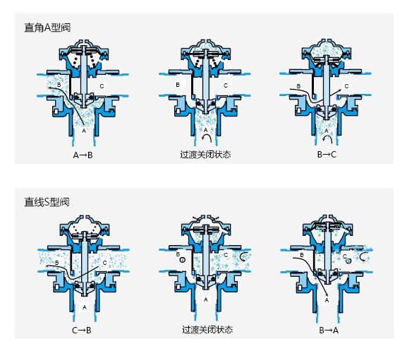 兩位三通閥適用于各種介質過濾器、盤片過濾器和網狀過濾器等的系統(tǒng)配套應用,隔膜驅動的閥塞可以在過濾器單元反洗時,首先關閉進水,然后采用過濾后水對過濾介質或過濾單元進行反沖洗并排走,實現(xiàn)了一閥多用的功能。閥門使用時由來自系統(tǒng)的水壓或氣壓源來控制開閉,通過有至少三個通路的電磁閥、分配器或手動先導閥等來的控制信號實現(xiàn)閥門切換,這樣就有兩種狀態(tài):