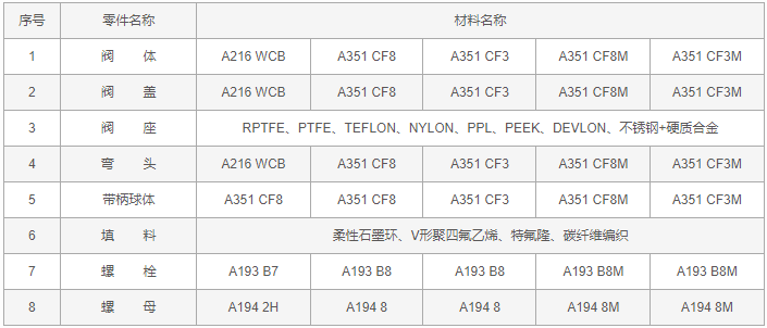 氣動(dòng)Y型三通球閥零件材料: