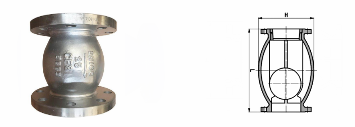 不銹鋼無磨損球形止回閥外形結(jié)構(gòu)圖: