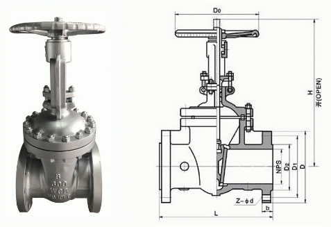 手動(dòng)美標(biāo)閘閥外形結(jié)構(gòu)圖: