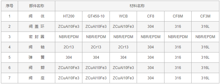 消聲止回閥零件材料: