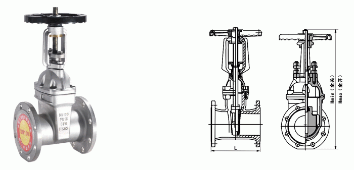 不銹鋼軟密封明桿閘閥外形結(jié)構(gòu)圖: